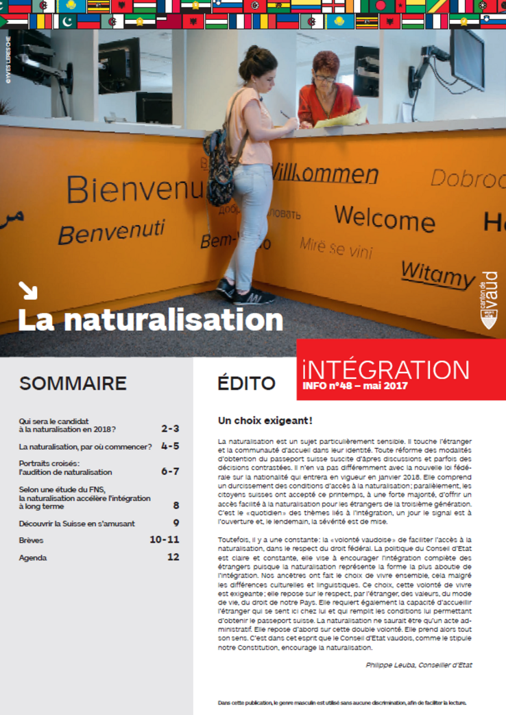 Avec l'entrée en vigueur de la nouvelle loi fédérale sur la nationalité en janvier 2018, les conditions d'accès à la nationalité soulèvent des nombreuses questions. Ce bulletin spécial, entièrement consacré à la naturalisation, propose un tour d'horizon sur le sujet.