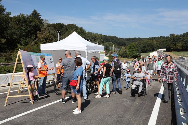 Samedi 8 septembre, la population de la région a répondu par millier à l’invitation de l’État de Vaud de se promener à pied, à vélo ou en rollers sur la nouvelle route, de s’arrêter aux près de 50 stands d’information et d’exposition répartis sur le tracé et de participer à des activités ludiques.