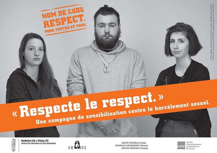 Cet affichage public vise à sensibiliser le grand public à la question du harcèlement sexuel. Elle s’inscrit dans un projet de sensibilisation et de prévention auprès des apprenti·e·s du canton. Cette démarche est le fruit de la collaboration entre le BEFH, l’Unité de promotion de la santé et de prévention en milieu scolaire (PSPS) et la Direction générale de l’enseignement postobligatoire (DGEP). En entrant dans le monde du travail, ces jeunes sont susceptibles de vivre des situations qui pourraient les marquer pour le reste de leur carrière. En Suisse, une femme sur trois et un homme sur dix ont reconnu avoir été confronté·e·s à un harcèlement sexuel au cours de leur vie professionnelle. C’est pourquoi, il est primordial, dès le début de l’intégration dans le milieu professionnel, d’adopter les bons réflexes, de savoir reconnaître ce qui est acceptable de ce qui ne l’est pas et surtout de savoir comment agir si une telle situation survenait.
