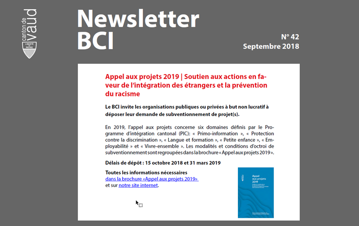 Le Bureau cantonal pour l'intégration des étrangers et la prévention du racisme (BCI) a le plaisir de vous dévoiler ses actualités dans sa newsletter. Au sommaire de cette nouvelle édition: