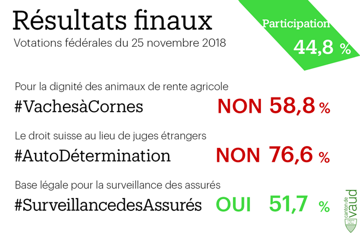 Résultats vaudois de la votation fédérale du 25 novembre 2018