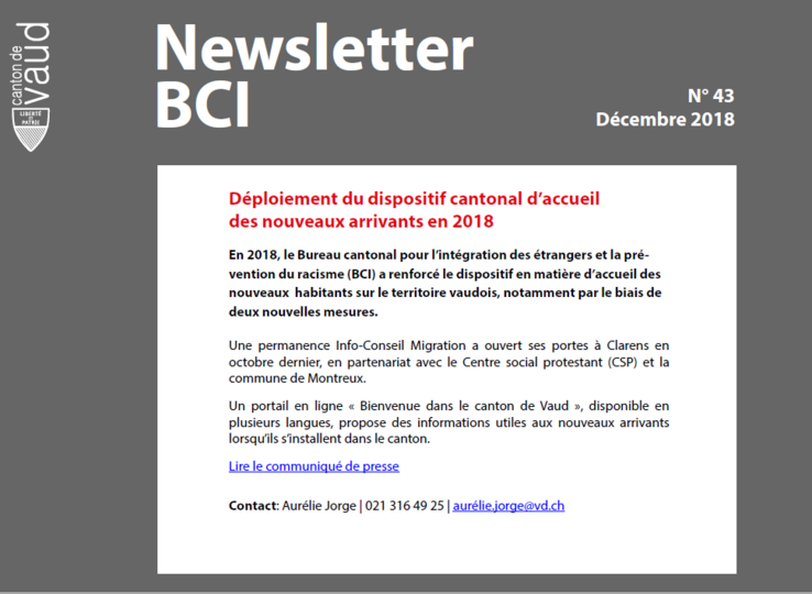 - Déploiement du dispositif cantonal d'accueil des nouveaux arrivants en 2018