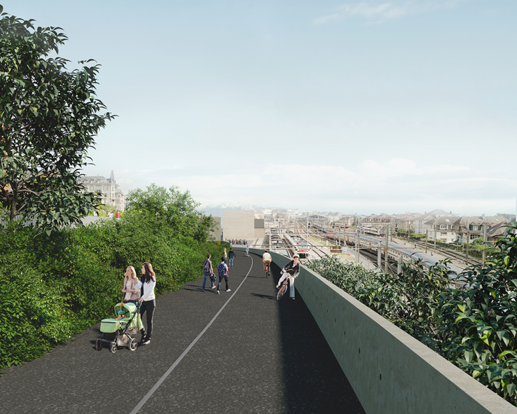 Avec la construction de la passerelle de mobilité douce qui reliera la place de la Gare de Lausanne à l’avenue Marc-Dufour, une nouvelle étape du projet PLATEFORME 10 a été dévoilée. Une fois cette liaison pour piétons et cyclistes achevée, le site des musées s’inscrira dans le tissu urbain en renforçant l’axe entre l’est et l’ouest de l’agglomération lausannoise.