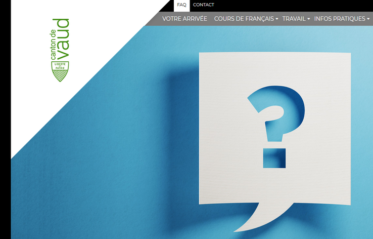 Si le portail « Bienvenue dans le canton de Vaud » met à disposition les informations nécessaires à la compréhension du système institutionnel (permis de séjour, école, assurance, emploi, etc.) et les démarches administratives à entreprendre, la nouvelle FAQ, disponible en français/anglais permet de regrouper en un coup d'oeil les questions les plus fréquemment posées et d’y répondre en redirigeant l'internaute vers d’autres sources d’informations.