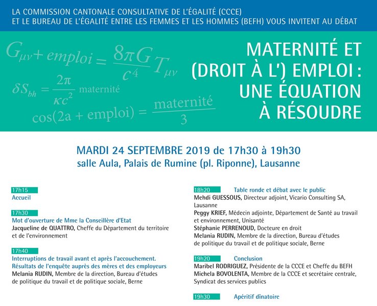 Interruptions de travail avant et après l'accouchement. Résultats de l'enquête auprès des mères et des employeurs (pdf, 570 Ko). Melania RUDIN, Bureau d'études de politique du travail et de politique sociale, Berne.