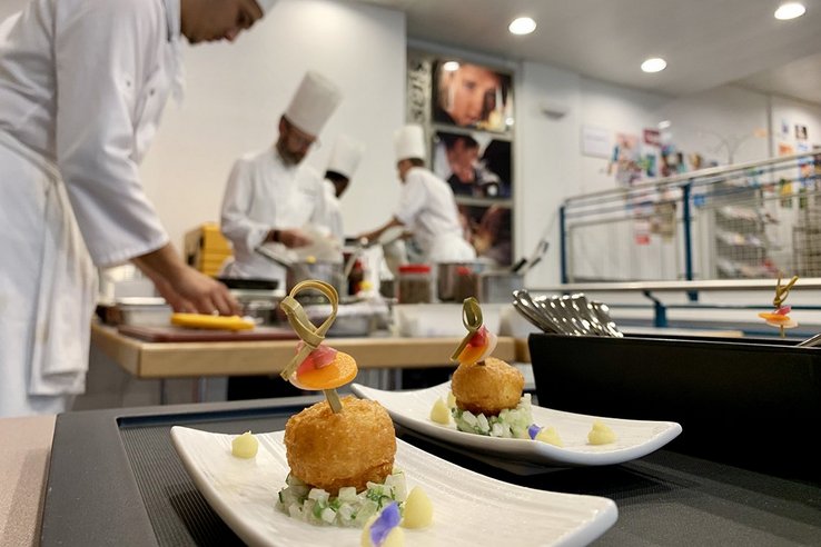 C’est à l’EPM que sont formés les cuisiniers, boulangers-pâtissiers-confiseurs, bouchers-charcutiers, spécialistes en restauration, spécialistes en restauration de système et meuniers du canton et pour certaines filières au niveau romand. 900 apprentis y suivent des cours pratiques et théoriques en apprentissage dual, c’est-à-dire en partageant leur temps entre un employeur et l’école. Ils obtiennent en fin de formation un Certificat fédéral de capacité (CFC) ou une Attestation fédérale de formation professionnelle (AFP). Une classe de maturité professionnelle intégrée est en projet pour la rentrée 2020 et l’école continue d’améliorer ses équipements (nouvelles salles pratiques de boulangerie-pâtisserie et de boucherie, wifi dans le bâtiment…). C’est dans ce cadre dynamique que le Département de la formation de la jeunesse et de la culture (DFJC) a accueilli la Semaine du Goût pour sa conférence de presse en présence des autorités communales de Montreux et de la conseillère d’Etat Cesla Amarelle.