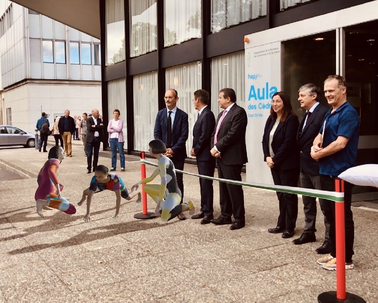 Le chef du DFIRE Pascal Broulis et la cheffe du DFJC Cesla Amarelle ont inauguré ce lundi en présence d’une centaine d’invités l’Aula des Cèdres, qui offre depuis la rentrée des espaces événementiels sécurisés et des moyens pédagogiques adaptés pour les années à venir. La délégation du Conseil d’Etat a verni à cette occasion l’intervention artistique Magic Window, une pièce de danse en réalité augmentée créée pour ce lieu par le chorégraphe Gilles Jobin. Voulue sans impact sur le site, cette œuvre qui intègre le mouvement des corps virtuels dans l’espace réel sera visible par les visiteurs au moyen d’une application gratuite sur leur smartphone.