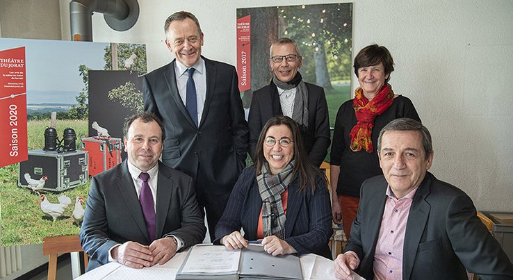 Cesla Amarelle, au nom de la commune de Jorat-Mézières par Patrice Guenat, syndic, pour la Fondation du Théâtre par Christian Ramuz, président, et Laurent Staffelbach, membre du Conseil de fondation, et pour le Théâtre du Jorat par Michel Caspary, directeur.