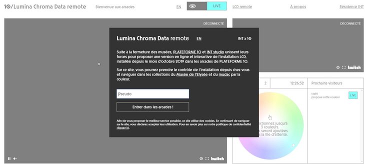 Prenez le contrôle de l’installation depuis chez vous grâce à la version "LCD Remote" et naviguez dans les collections du Musée de l’Elysée et du mudac par la couleur.