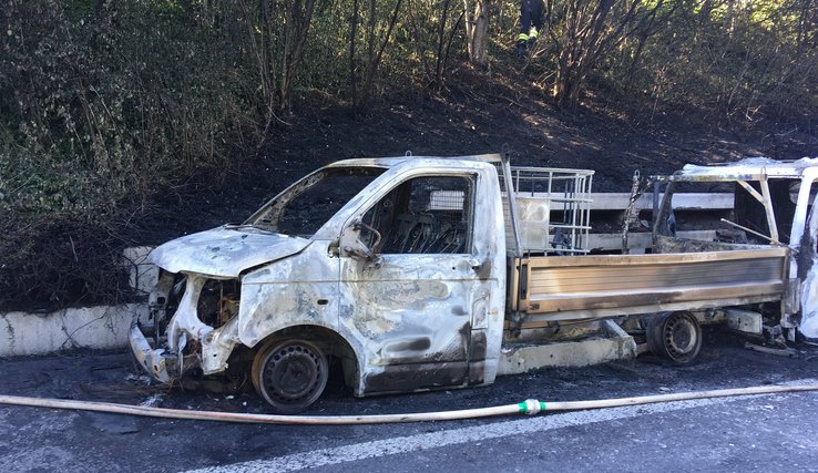 Sur place, les intervenants ont constaté qu’entre temps que le conducteur d’un second véhicule s’était arrêté sur les lieux pour prêter main forte avec un extincteur et tenter de combattre le sinistre, mais en vain. La première voiture de livraison était la proie des flammes et en raison des dommages occasionnés par l’incendie, elle s’est mise en mouvement pour aller heurter la seconde voiture de livraison qui tractait une remorque. Malgré l’intervention rapide des sapeurs-pompiers, les deux véhicules ont été entièrement détruits, alors que la remorque a partiellement été endommagée. La végétation sise à proximité du sinistre a également été atteinte par les flammes et le dégagement de chaleur.