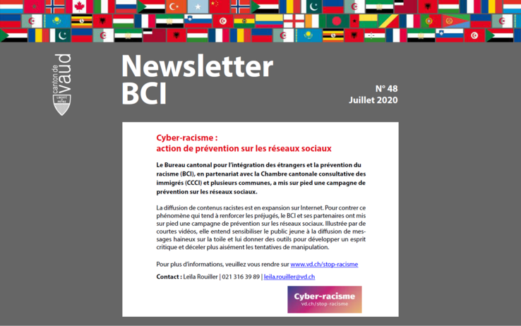 Le Bureau cantonal pour l'intégration des étrangers et la prévention du racisme (BCI) a le plaisir de vous dévoiler ses actualités dans sa newsletter.