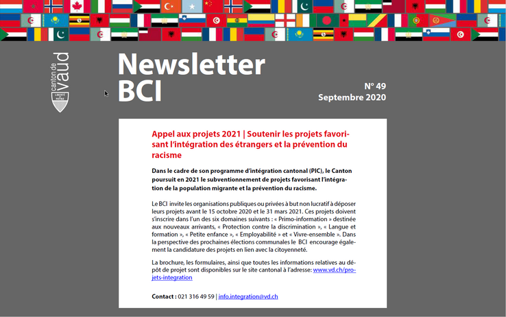 - Prix «IntégrAction Vaud» 2020 : appel à candidatures