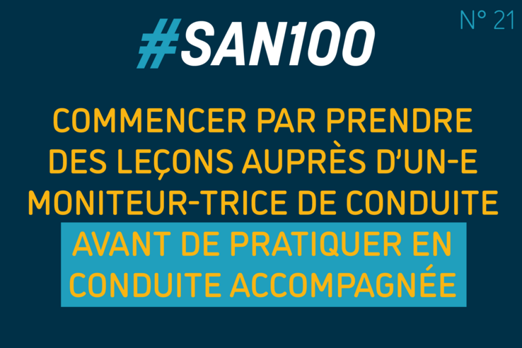 Conseil N° 21 : Leçons de conduitePublié le 21.09.2021 - Catégorie : san100-conseilsDécouvrez les 100 conseils du SAN pour votre sécurité.Le SAN fête son 100ème anniversaire→ Toutes les informations relatives aux actions déployées