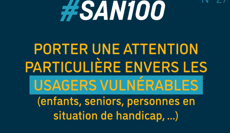 Conseil N° 27 : Personnes vulnérablesPublié le 27.09.2021 - Catégorie : san100-conseilsDécouvrez les 100 conseils du SAN pour votre sécurité.Le SAN fête son 100ème anniversaire→ Toutes les informations relatives aux actions déployées