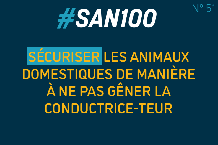 Conseil N° 51 : Vos animaux en voiturePublié le 21.10.2021 - Catégorie : san100-conseilsDécouvrez les 100 conseils du SAN pour votre sécurité.Le SAN fête son 100ème anniversaire→ Toutes les informations relatives aux actions déployées