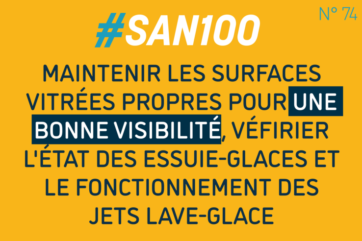 Conseil N° 74 : Bonne visibilité Publié le 13.11.2021 - Catégorie : san100-conseilsDécouvrez les 100 conseils du SAN pour votre sécurité.Le SAN fête son 100ème anniversaire→ Toutes les informations relatives aux actions déployées