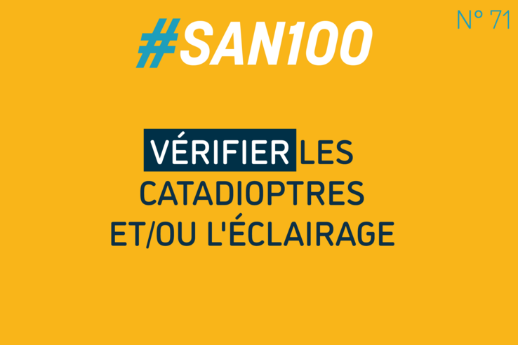 Conseil N° 71 : Système rétroréfléchissant et éclairagePublié le 10.11.2021 - Catégorie : san100-conseilsDécouvrez les 100 conseils du SAN pour votre sécurité.Le SAN fête son 100ème anniversaire→ Toutes les informations relatives aux actions déployées