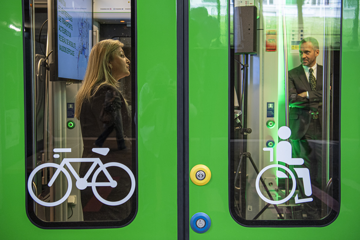 La conseillère d'Etat Nuria Gorrite a présenté les améliorations de l'offre à venir dans une rame du LEB. [ARC Sieber]