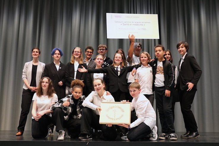 Les 5 groupes finalistes du concours pour les langues anciennes ont offert aux nombreux invités une magnifique démonstration de l’enthousiasme suscité par l’étude des langues anciennes. La préférence du public et du jury, après un vote serré, s’est finalement portée sur le projet du cours facultatif de grec de 10e et de 11e années de Bercher, classe de Mme Stéphanie Demierre, intitulé « Cluedo : Mystère à Epidaure ! ». Bravo aux élèves de ces classes ainsi qu'à toutes et tous les participants!