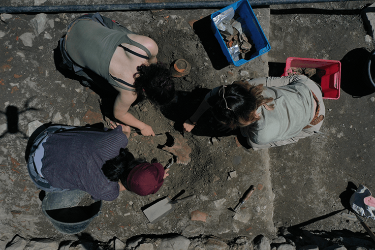 Durant les deux dernières campagnes, la fouille de deux parcelles d’habitat a permis de dégager les constructions les plus anciennes de ce quartier, alors totalement bâti en terre et en bois. Les vestiges mis au jour dans ces maisons montrent une occupation très dynamique, témoignant de nombreuses restructurations, changements architecturaux et évolutions fonctionnelles. En parallèle, l’exploration du secteur nord, ouvert en 2019, a engendré la découverte d’espaces probablement à ciel ouvert, munis de plusieurs puits, ainsi qu’un nouveau bâtiment maçonné construit durant la deuxième moitié du troisième siècle. De nombreux éléments architecturaux (vestiges de parois, sols, foyers…), ainsi qu’un mobilier riche et varié (céramique, objets en métal, monnaies, os…) permettent également d’affiner la connaissance du niveau de vie et des activités des différents habitants qui se sont succédés dans ces maisons au fil des siècles.