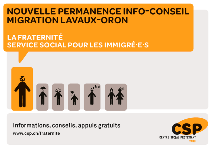 Cette permanence s’adresse aussi bien aux personnes étrangères que suisses. Elle permet aux habitant-e-s du district du Lavaux-Oron d’obtenir des informations notamment en lien avec la migration, le statut légal ou encore les assurances sociales.