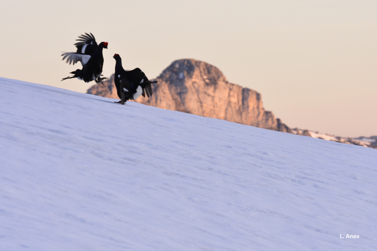 Approuvées par la Confédération et couvrant plus de 100 km2, 24 zones de tranquillité de la faune (ZTF) sont désormais effectives dans les Alpes vaudoises. Elles ont été établies dans les secteurs où résident des espèces sensibles et où des dérangements occasionnés par des activités de loisirs sont avérés, en particulier en hiver. Conformément à la loi fédérale sur la chasse, les cantons sont autorisés à désigner des zones de tranquillité afin de garantir à la faune sauvage un habitat préservé où les animaux peuvent se réfugier et se nourrir. La saison froide est en effet critique pour de nombreuses espèces, à l’image du tétras lyre, du lièvre variable ou du cerf, pour qui les éventuels dérangements peuvent être fatals. La faune est également très exposée durant la période de reproduction et d’élevage des jeunes : en cas de dérangement, les animaux peuvent abandonner leur nid ou leurs jeunes, compromettant fortement leur reproduction. En canalisant les usagers et en limitant les impacts sur la faune, les zones de tranquillité visent dès lors à concilier la pratique d’activités de loisir avec les besoins de la faune sauvage.