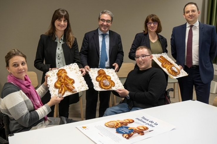 "Tous de la même pâte": rencontre entre Mme Rebecca Ruiz, cheffe du Département de la santé et de l’action sociale et M. Frédéric Borloz, chef du Département de l’enseignement et de la formation professionnelle et des ambassadeurs de Pro Infirmis.