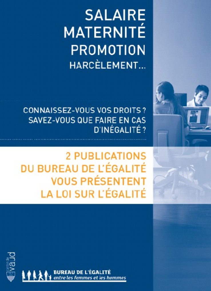 - Une brochure destinée aux personnes victimes de discrimination, aux professionnel·le·s qui les accompagnent ainsi qu’aux employeurs Salaire, promotion, maternité, harcèlement – La loi sur l’égalité vous (pdf, 4.74 Mo) protège - Mode d’emploi pour comprendre la loi et faire valoir vos droits (pdf, 4.74 Mo)