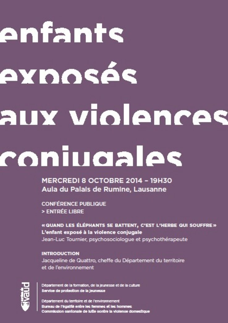 Le Service de protection de la jeunesse (SPJ), le Bureau de l'égalité entre les femmes et les hommes (BEFH) et la Commission cantonale de lutte contre la violence domestique (CCLVD) organisent deux événements sur le thème de l'exposition des enfants à la violence conjugale: