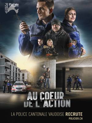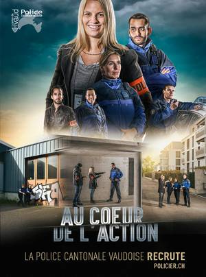 Cette année encore, la Police cantonale vaudoise innove dans sa campagne de communication autour du recrutement. Elle assure une présence tant virtuelle que physique par le biais d’une web-série diffusée sur les réseaux sociaux, notamment Facebook et Twitter et du site www.policier.ch, et dans tout le canton au travers de la diffusion d'affiches au format mondial. Composée d’épisodes d’environ une minute chacun, l’objectif de ces mini-métrages est de présenter de manière aussi dynamique que spectaculaire la diversité du travail de policier. Retrouvez la web-série sur les réseaux sociaux et Youtube, à partir du mercredi 4 février 2015!