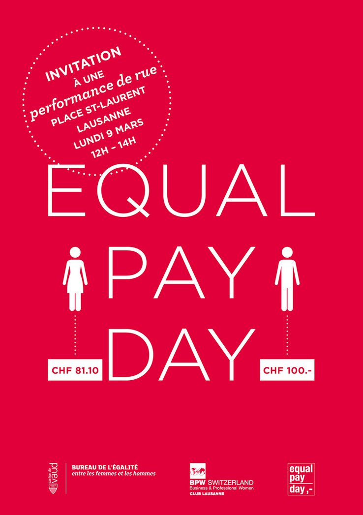 Le Bureau de l’égalité entre les femmes et les hommes (BEFH) et le Business Professional Women (BPW) Club de Lausanne vous invitent à l’Equal Pay Day, journée d’action instaurée depuis plusieurs années pour l’égalité salariale.