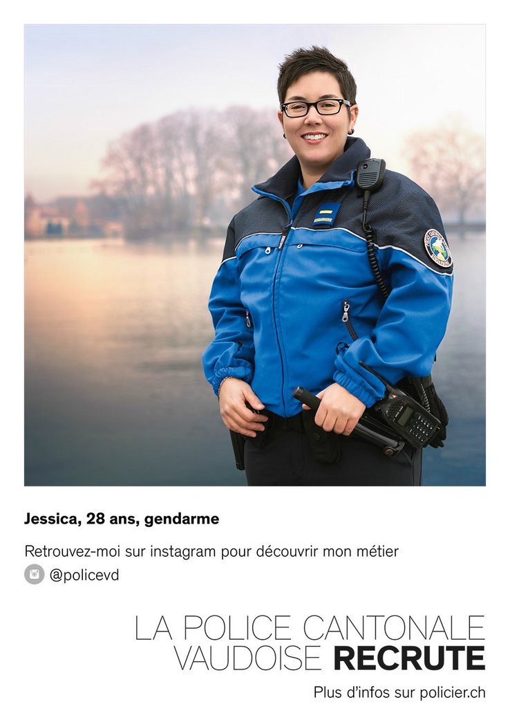 Cette année encore, la Police cantonale vaudoise innove dans sa campagne de communication autour du recrutement. Les futur(e)s candidat(e)s peuvent désormais suivre les gendarmes Jessica, Kelly et Julien sur le compte Instagram de la Police cantonale vaudoise (https://www.instagram.com/policevd/). Une première en Suisse romande ! En effet, ces trois ambassadeurs permettront aux personnes qui le désirent de suivre leur quotidien à travers des photos postées, qui illustrent la vie de gendarme. Durant cette campagne, qui se veut humaine et proche du citoyen, la Police cantonale vaudoise renforce sa présence sur les réseaux sociaux, notamment Instagram et Facebook et ainsi que sur le site www.policier.ch totalement revisité pour l’occasion. De plus, des affiches au format mondial seront diffusées dans tout le canton avec le portrait en contexte des trois ambassadeurs de cette campagne de recrutement. Retrouvez Jessica, Julien et Kelly sur Instagram à partir du lundi 8 février 2016 !