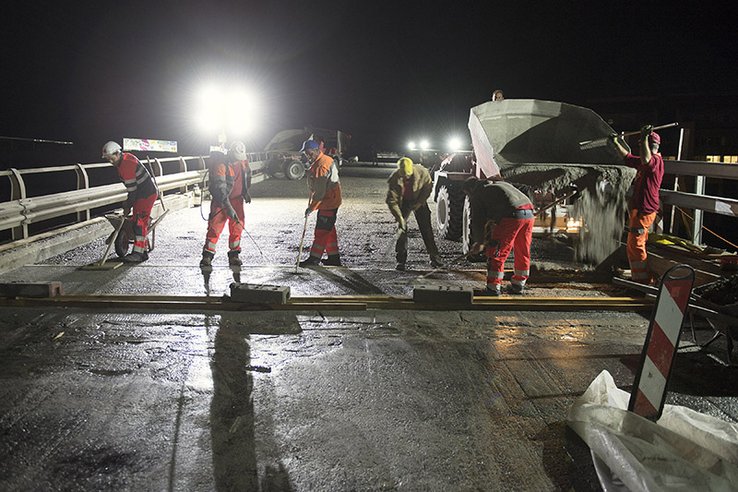 Afin de limiter les perturbations sur cet ouvrage qui supporte un important trafic, une partie des travaux se fait de nuit et les week-ends de juillet et août.