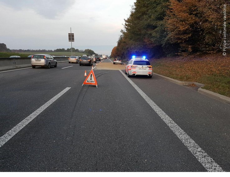 Mercredi 2 novembre 2016, vers 7h00, une remorque de gravier s’est dételée pour des raisons indéterminées et renversée fond sur fond sur la voie de droite de l’autoroute A9 Lausanne –Simplon, direction Genève entre la Blécherette et l’échangeur de Villars-Ste-Croix. Cette voie ainsi que la bande d’arrêt d’urgence ont été fermées pour les besoins du constat et de mise en état de la chaussée jusqu’à 9h15. Les deux autres voies étaient libres pour la circulation. Il n’y a eu aucun blessé.
