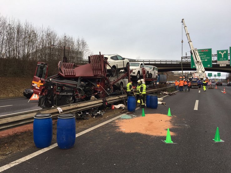 Vendredi matin vers 06h45, le chauffeur d’un camion qui circulait sur l’autoroute A1 direction Genève a, pour une raison inconnue, perdu la maîtrise de son véhicule. Il transportait un chargement de voitures. Seul en cause, il est parti en embardée, terminant sa course en s’encastrant dans la glissière de sécurité. Suite au choc, l’un des véhicules de son chargement est tombé sur la chaussée opposée. Prisonnier de son habitacle, le chauffeur a dû être désincarcéré par les pompiers du Service de protection et sauvetage de la Ville de Lausanne (SPSL). Il a été pris en charge par un médecin du SMUR puis transporté en ambulance, grièvement blessé.