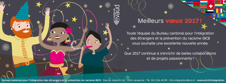 Toute l’équipe du Bureau cantonal pour l’intégration des étrangers et la prévention du racisme vous adresse ses vœux les plus chaleureux pour l’année 2017!