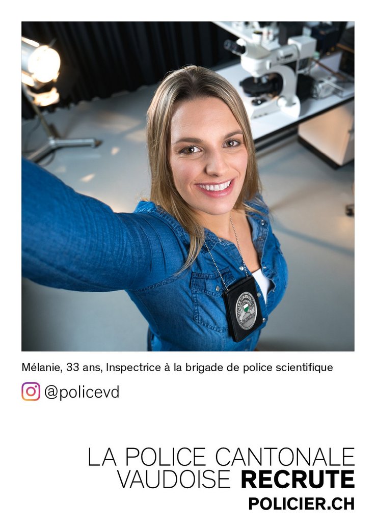 Pour la deuxième année de suite, la Police cantonale vaudoise invite les futurs-es candidat-es à suivre la réalité quotidienne de ses ambassadrices et ambassadeurs. Cette année, le gendarme Julien, ambassadeur depuis une année, accueille Mélanie, inspectrice à la brigade de police scientifique de la police de sûreté, Olivier, gendarme d’intervention et Laurent, officier de gendarmerie. Ces derniers partageront leurs activités sur le compte Instagram de la Police cantonale vaudoise (https://www.instagram.com/policevd/). En effet, ces quatre ambassadeurs permettront aux personnes qui le désirent de suivre leur quotidien à travers des photos postées, qui illustrent la vie de policier. Durant cette campagne, qui se veut proche du citoyen, la Police cantonale vaudoise renforce sa présence sur les réseaux sociaux, notamment Instagram et Facebook et ainsi que sur le site www.policier.ch mis à jour pour l’occasion. De plus, des affiches au format mondial sont diffusées dans tout le canton avec le « selfie » des trois nouveaux ambassadeurs de cette campagne de recrutement. Retrouvez Mélanie, Olivier et Laurent sur Instagram !