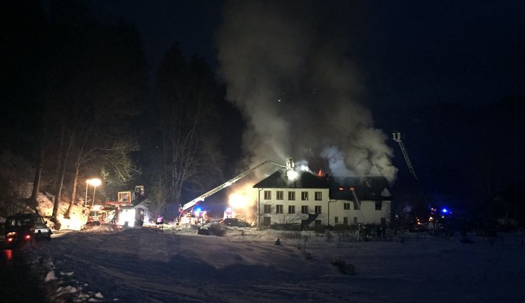 Mardi 21 février 2017, vers 16h00, la centrale du 118 était avisée d’un incendie dans un immeuble de 3 étages à Rossinière, dans la localité de la Tine. Pour une raison que l’enquête devra déterminer, le feu s’est déclaré dans l’annexe (un atelier et un appartement) d’un immeuble de 3 étages. L’incendie s’est ensuite propagé dans le bâtiment principal, à la hauteur du 2ème étage. Les 2 familles (8 personnes) domiciliées à cette adresse ont pu quitter leur logement sans être blessées. Le feu dans le bâtiment a pu être circonscrit et les dégâts ont été limités. Par contre, à 22h00, l’incendie de l’annexe n’avait toujours pas pu être entièrement éteint.