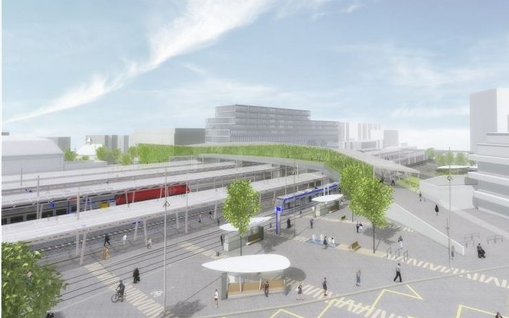 Première amélioration concrète du programme Léman 2030, le passage sous-voies de la gare de Renens est inauguré aujourd’hui. Il permet désormais à chacun de traverser la gare plus facilement et en toute sécurité. Première étape d’une grande métamorphose en marche, c’est l’occasion pour le gouvernement vaudois de mettre sur les rails le futur ouvrage emblématique de la mobilité dans l’Ouest lausannois: Rayon vert. En effet, le gouvernement demande au Grand Conseil d’accorder une subvention de près de 11 millions de francs pour financer la réalisation de cette vaste passerelle reliant des métros, des trains et bientôt des trams. Le nouvel ouvrage d’art de 130 mètres de long facilitera également les déplacements entre les différents quartiers des communes situées aux abords des voies CFF.