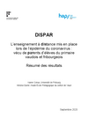 Malgré une situation exceptionnelle et difficile, une bonne majorité des parents d’enfants scolarisés au primaire (étude HEP) se sont sentis relativement à l’aise pendant l’enseignement à distance. Cependant, ils ont eu des difficultés à motiver leurs enfants à se mettre au travail, à persévérer. Ils ont aussi eu du mal à répondre de manière «adéquate» à leurs questions, à leur expliquer correctement « à la manière de l’enseignant ». Le travail scolaire a par ailleurs engendré d’importantes tensions. Les parents ont plutôt eu l’impression de faire l’école à la maison que d’assister à l’enseignement à distance de leur enfant.