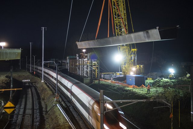 Dans la nuit du 19 au 20 novembre, le dernier élément métallique du viaduc de la route cantonale 177 a été posé au-dessus des voies CFF à proximité de Vufflens-la-Ville. Le trafic ferroviaire a été interrompu pendant la durée de cette opération.