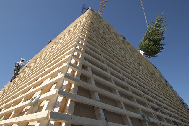 Les derniers panneaux qui constituent la charpente du nouveau Parlement ont été érigés. La forme du nouveau toit est désormais visible.