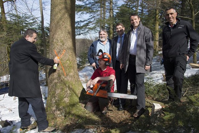 Les deux premiers arbres qui serviront à fabriquer la charpente du nouveau Parlement vaudois ont été coupés dans la forêt du Jorat. L'opération vise à promouvoir une industrie forestière régionale à fort potentiel de développement. Un exemple original de partenariat entre les secteurs public et privé.