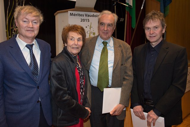 Le Conseil d'Etat a décerné le Mérite cantonal à François Junod, Simone Chapuis-Bischof, Michael Graetzel et Luc Breton, le 4 mars à Sainte-Croix.