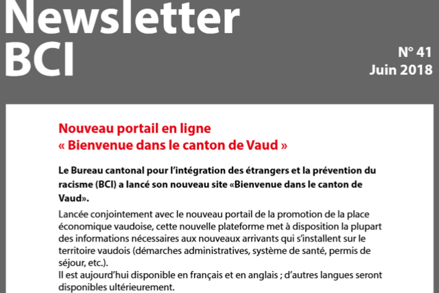 Le Bureau cantonal pour l'intégration des étrangers et la prévention du racisme (BCI) a le plaisir de vous dévoiler ses actualités dans sa newsletter. Au sommaire de cette nouvelle édition: