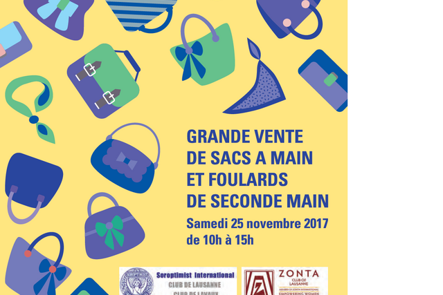 Dans le cadre de la Journée internationale pour l’élimination de la violence à l’égard des femmes, le 25 novembre 2017, une vente de sacs à main et de foulards de seconde main est organisée par SOROPTIMIST INTERNATIONAL Clubs Lausanne et Lavaux et ZONTA Club de Lausanne.