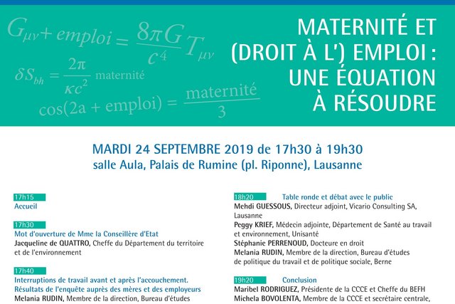 La Commission cantonale consultative de l’égalité (CCCE) et le Bureau de l'égalité entre les femmes et les hommes (BEFH) ont organisé un débat public sur la problématique de la maternité et de l’emploi.