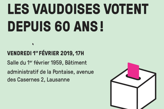Ce vendredi 1er février 2019, l’Association vaudoise pour les droits des Femmes avec le soutien du Bureau de l’égalité entre les femmes et les hommes, le Centre de Liaison des Associations Féminines Vaudoises et politiciennes.ch, vous invite à commémorer le 60ème anniversaire du droit de vote et d’éligibilité des Vaudoises. En présence de…