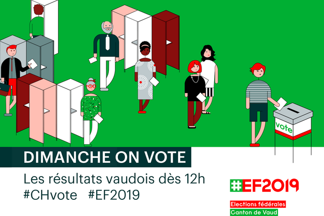 Dimanche 20 octobre dès midi, on pourra suivre sur cette page la progression du scrutin vaudois pour les élections au Conseil national et au Conseil des Etats.