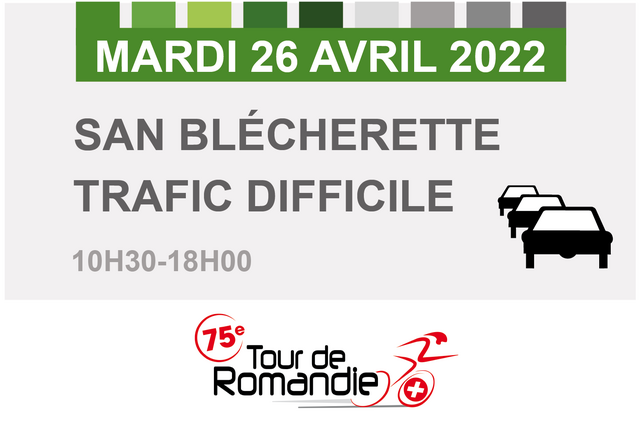En raison du prologue du 75ème Tour de Romandie, la périphérie de notre site de Lausanne sera fortement perturbé durant la journée du mardi 26 avril 2022.